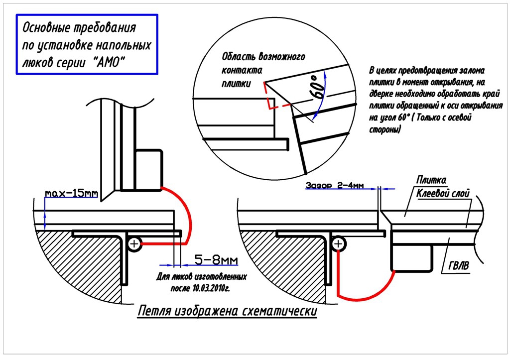 АМО с амортизаторами в проём 600п*700 мм. сварен из стальной трубы и уголка 40х40х4мм. Окрашен в высокотемпературной камере порошковой эмалью. Предназначен для использования внутри помещений. Габаритный размер рамы на полу 772х672 мм.Укомплектован пневматическими подъемниками, скрытыми петлями и регулируемым замком со съемной ручкой. Тип открывания распашной. Крышка двери размером 637х582 петля мм подготовлена под облицовку напольной плиткой или доской ламината по прилагаемой инструкции. Купите АМО 600п*700 по специальной цене от производителя. Заказывайте с доставкой по России!