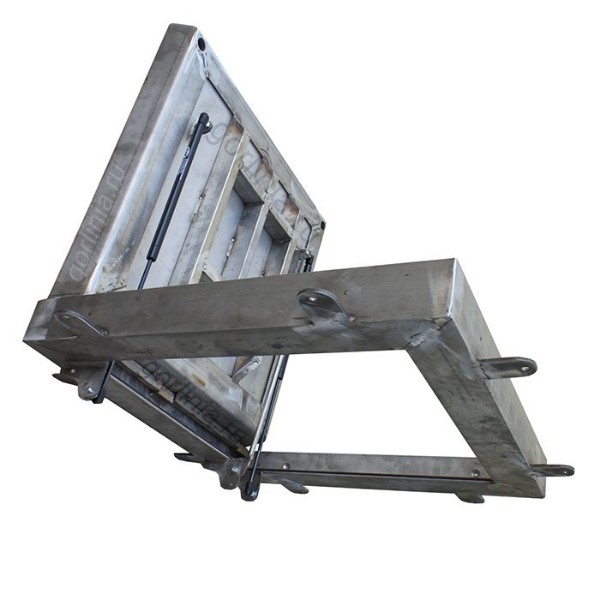 Каркас коробки и створки сварен из стали AISI 304 с толщиной стенки 5/6 мм; в дне корыта лист 5/8 мм (параметр зависит от грузоподъемности), снизу армирован профильной трубой 50х25. Сварка аргонно-дуговая. Характер шва: сплошной с присадками для нержавейки.