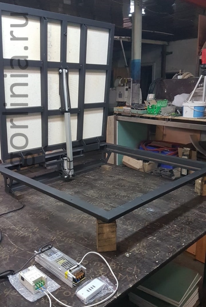 Точечный вылет кронштейнов относительно опорных поверхностей 36/48 мм в зависимости от мощности усилия электроподъемника.Аварийный вариант — поднимаем крышку руками и фиксируем в перпендикулярном линии пола состоянии штоком обесточенного подъемника.