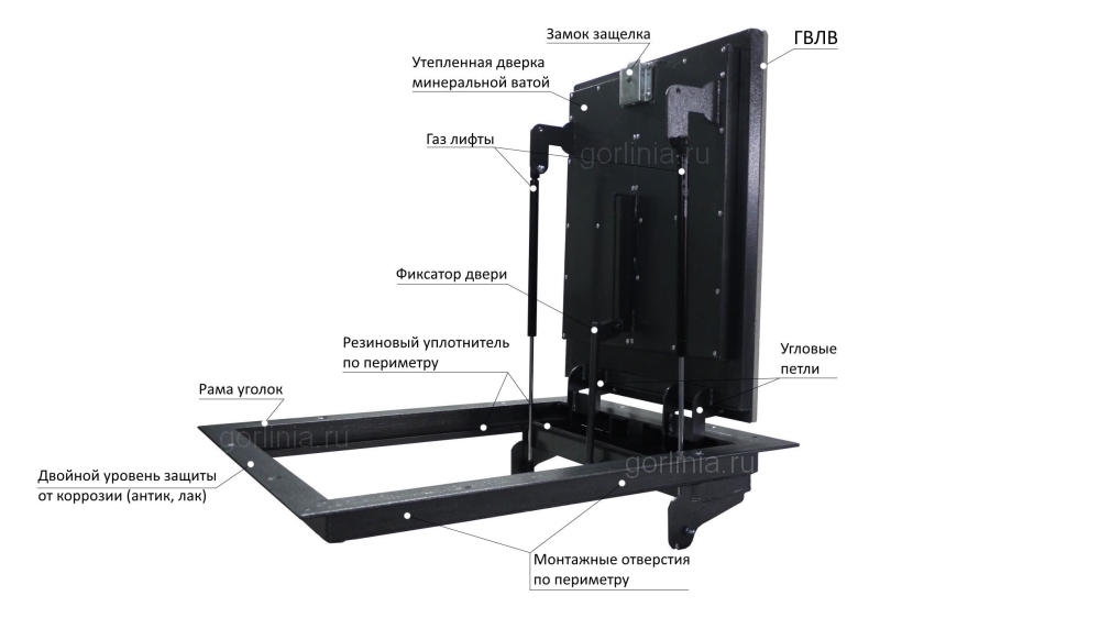 Створка открывается по стороне 1200 мм. Рама сварена из уголка 63х63 мм. Внешний габарит по раме 815х1315 мм. Световой проём составляет 540х1150 мм.