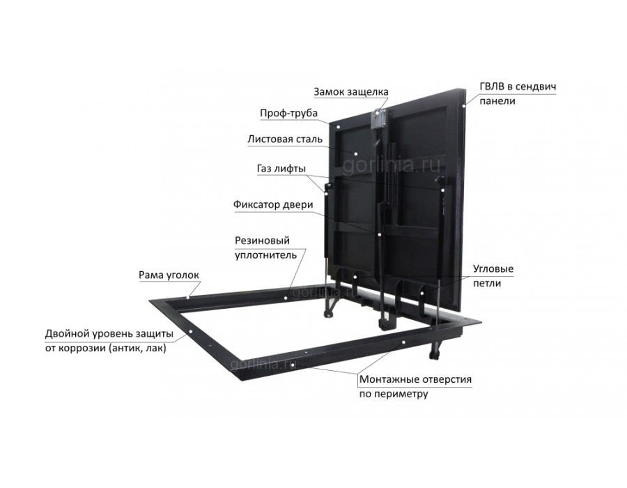 - крышка является сэндвич-панелью с основой из листовой стали;