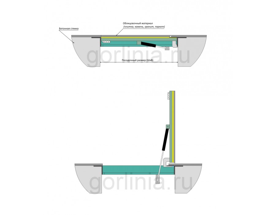 - механизм открывается посредством пневматических цилиндров;